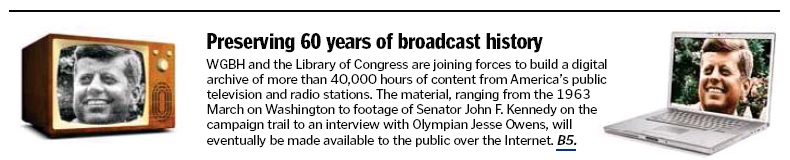 American Archive Featured in the Boston Globe November 15, 2013December 16, 2013 ~ American Archive of Public Broadcasting The American Archive was featured on the front page of the Boston Globe this morning, November 15, 2013! To read the full article: http://ow.ly/qR7eg Share this: Click to share on X (Opens in new window) X Click to share on Facebook (Opens in new window) Facebook Like Loading... Related Published by American Archive of Public Broadcasting View all posts by American Archive of Public Broadcasting