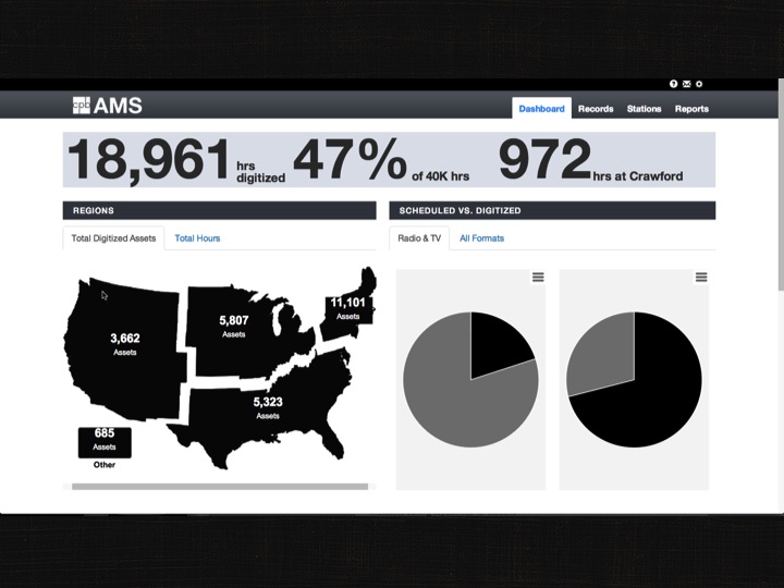 – Provide reporting features to allow AAPB staff to track the progress of digitization according to region, number of hours, number of assets, radio versus television, format types, and more.