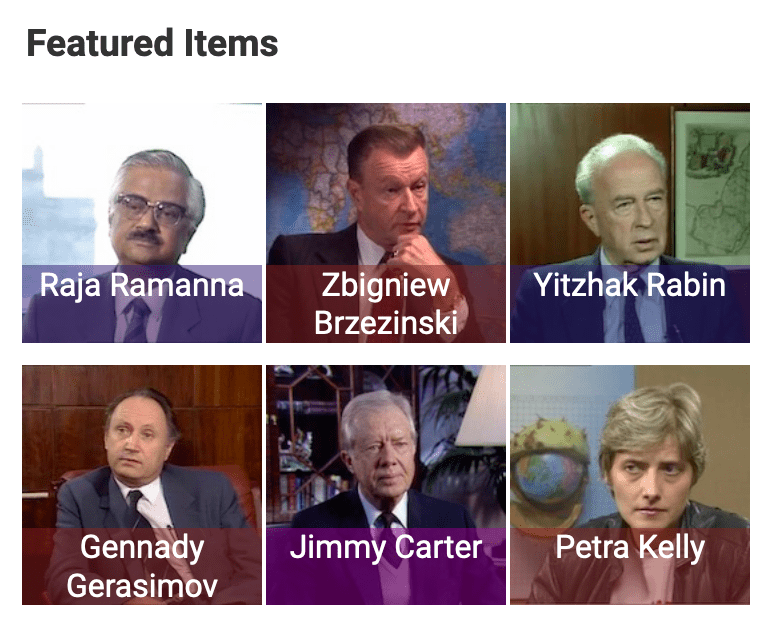War and Peace in the Nuclear Age (known around the WGBH office as WAPINA), was a challenging collection to write, because of both the topic and the content. The series itself was large, and a fair number of the files that were on OpenVault weren’t available on the AAPB, thus requiring data harmonization before the collection could go up. The large number of files also meant that I had a large number of interviews to pick from for the Featured Items section, but it was also a positive since I was able to pick a relatively representative bunch of interviews to feature, including speakers of various nationalities and positions on nuclear weapons.