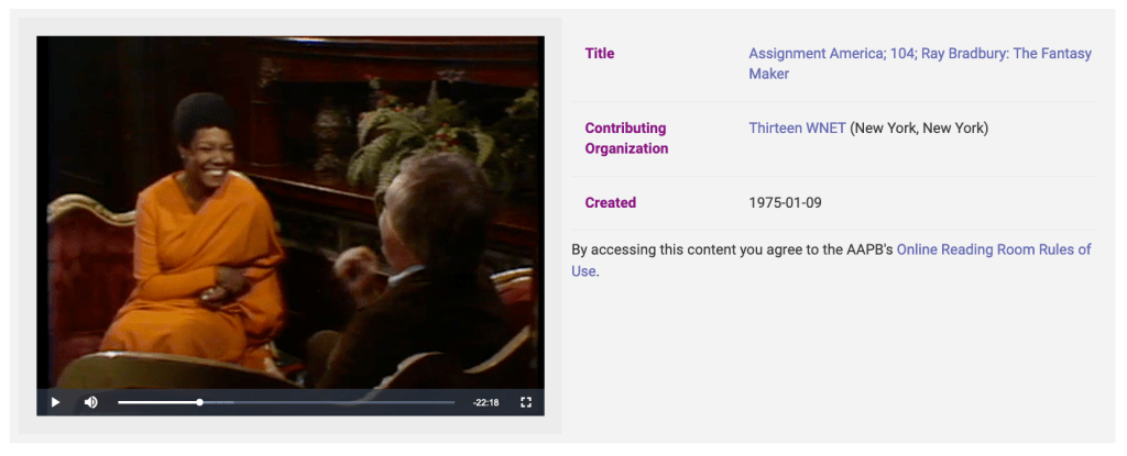 We are very excited to offer this new way to engage with and share the historic materials preserved in the AAPB. Contact us with any questions at aapb_notifications@wgbh.org.